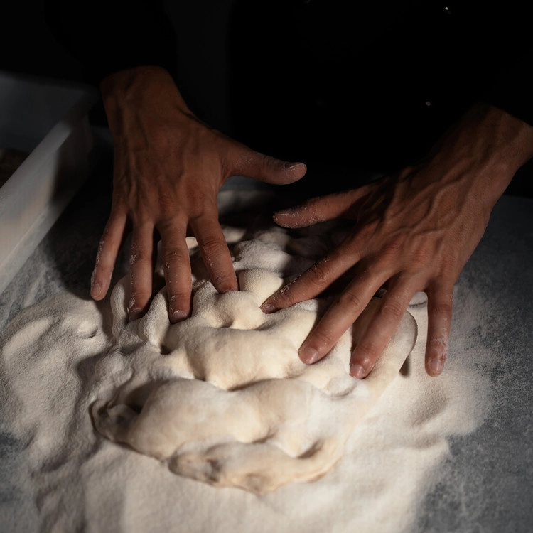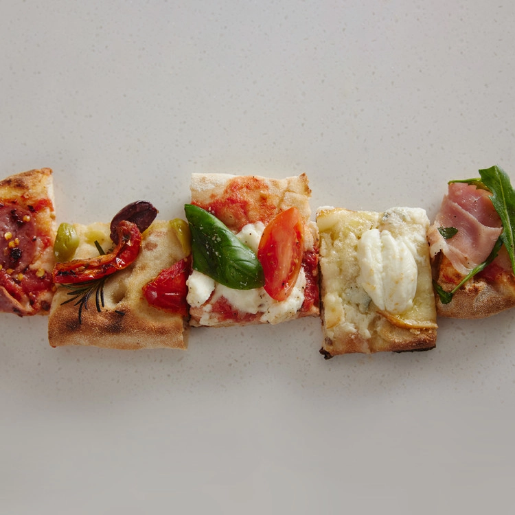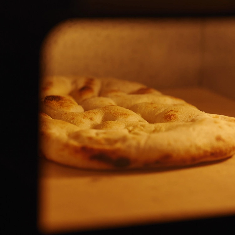 핀사 로마나는 고대 로마의 레시피를 바탕으로 밀, 쌀, 콩가루를 혼합한 고품질의 반죽을 저온에서 72시간 발효한 후 손으로 펴서 만듭니다. 오랜 시간 발효한 반죽으로 식감이 풍부하고 소화가 잘 됩니다.