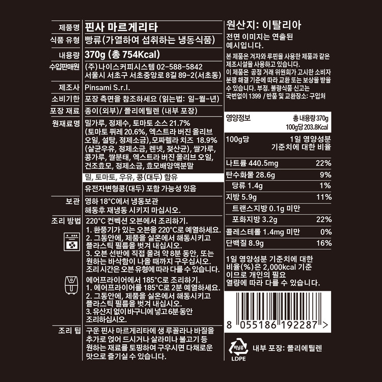오븐: 220℃ / 해동 10분 + 조리 8분