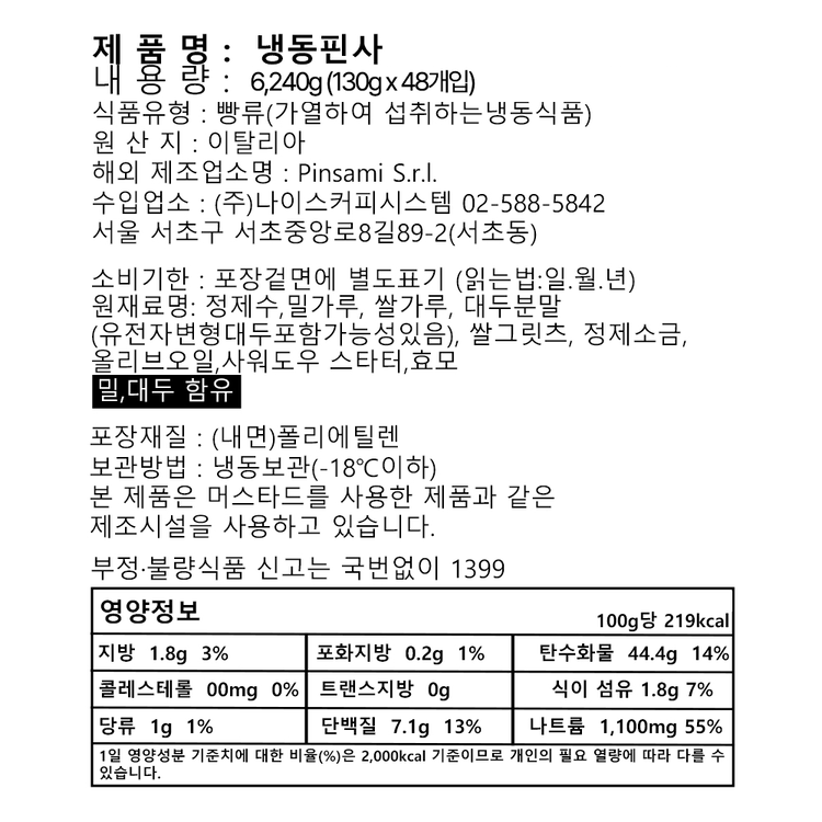| 재료 | 밀가루, 정제수, 쌀가루, 콩가루, 쌀분태, 건조 밀 사워도우 스타터, 올리브유, 정제소금, 건조효모 |